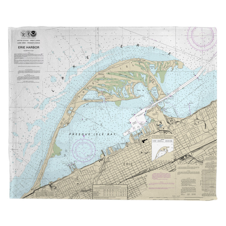 Breakwater Bay Nautical Chart Erie Harbor Presque Isle Pa Fleece Throw Wayfair